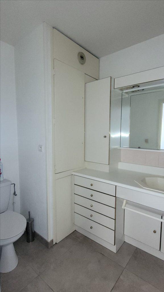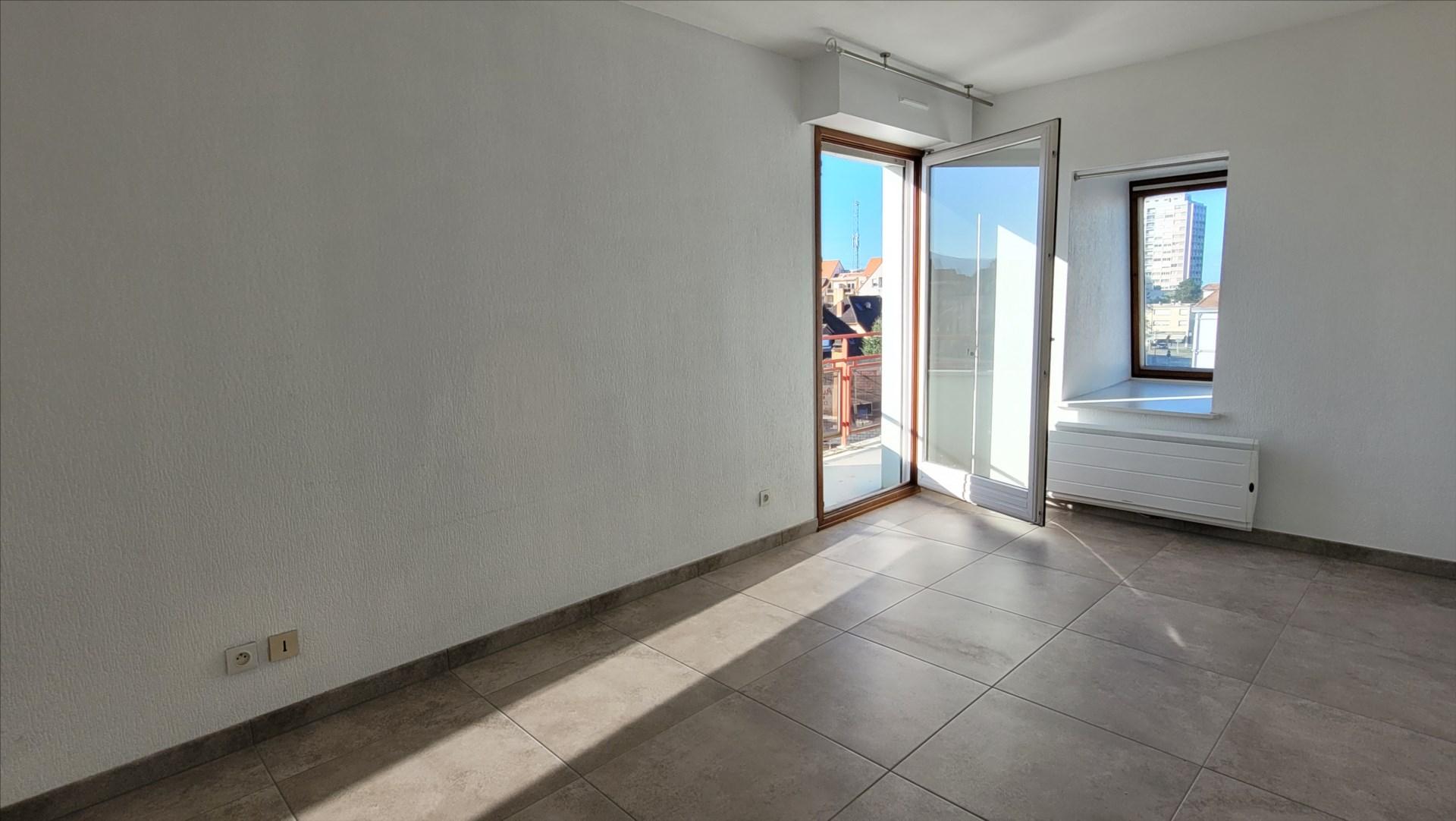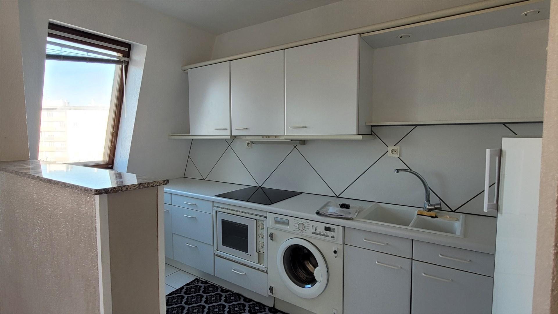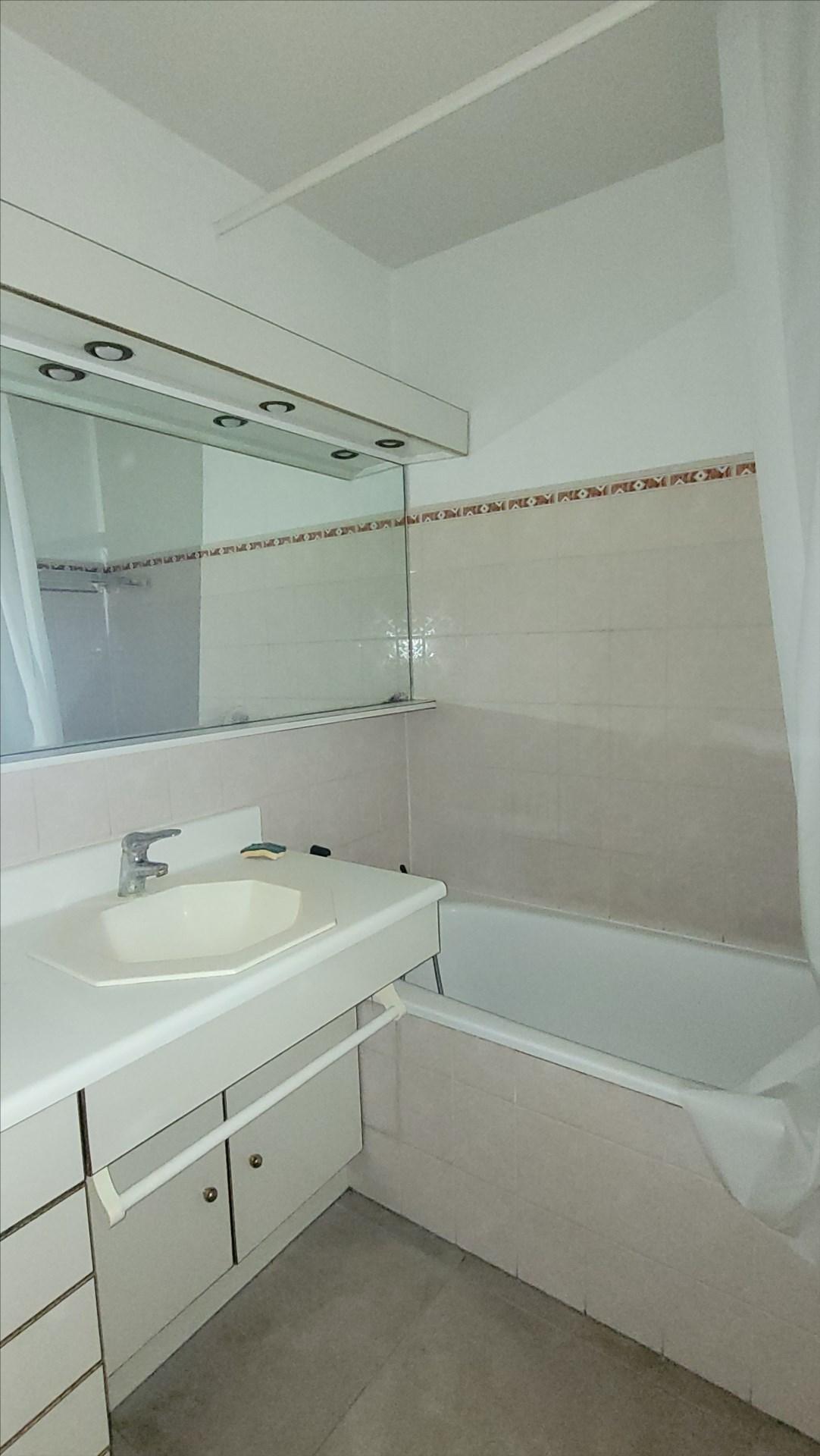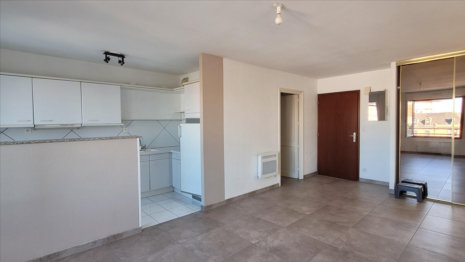 une chambre, une cuisine équipée ouvert sur le salon, un balcon, salle de bains et WC, entrée avec rangements.