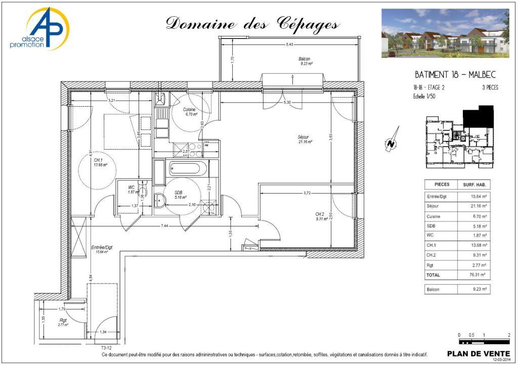 Appartement F3 de 76 m² :