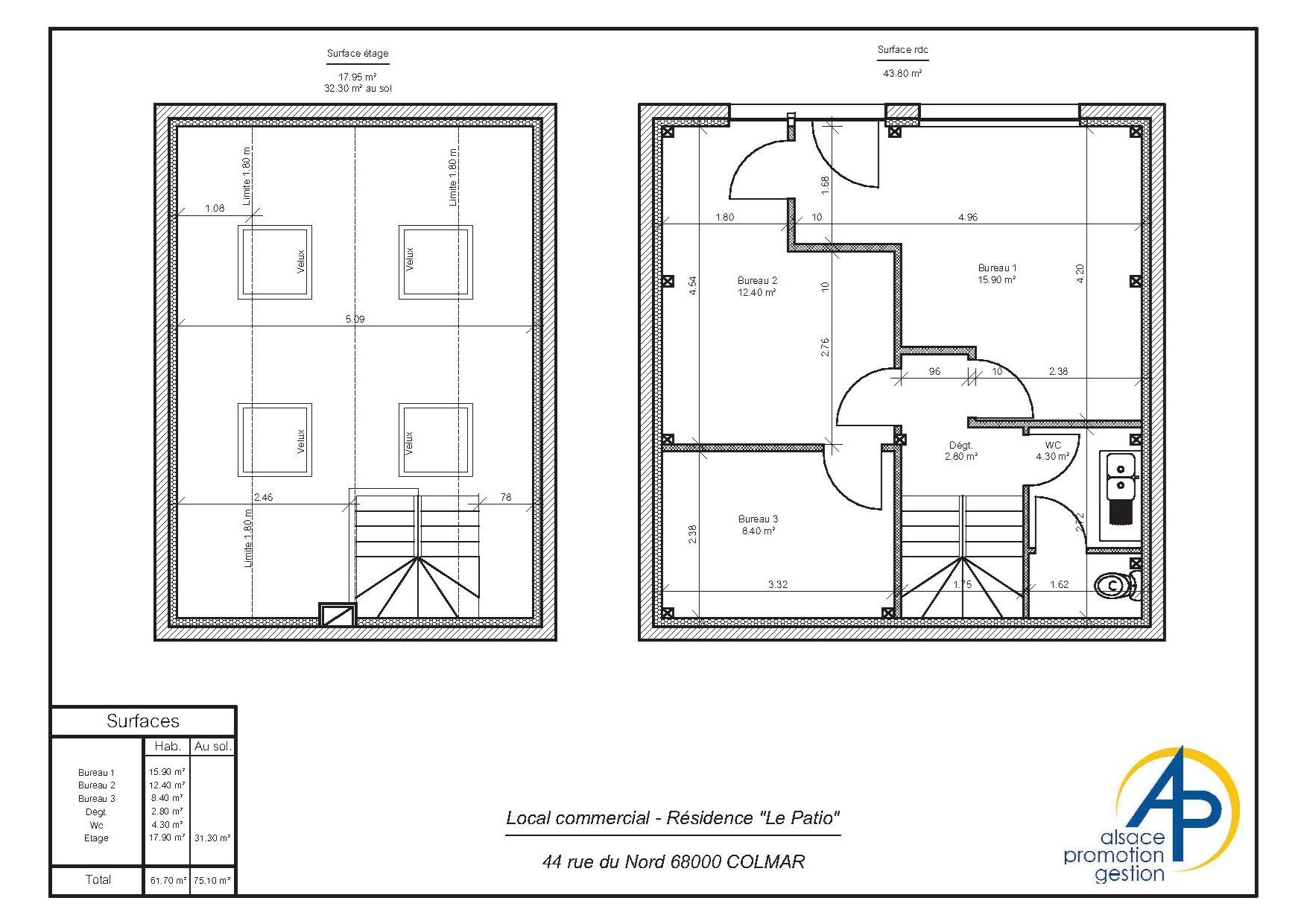 Résidence LE PATIODans copropriété proche du centre ville, local commercial de 61m² comprenant: