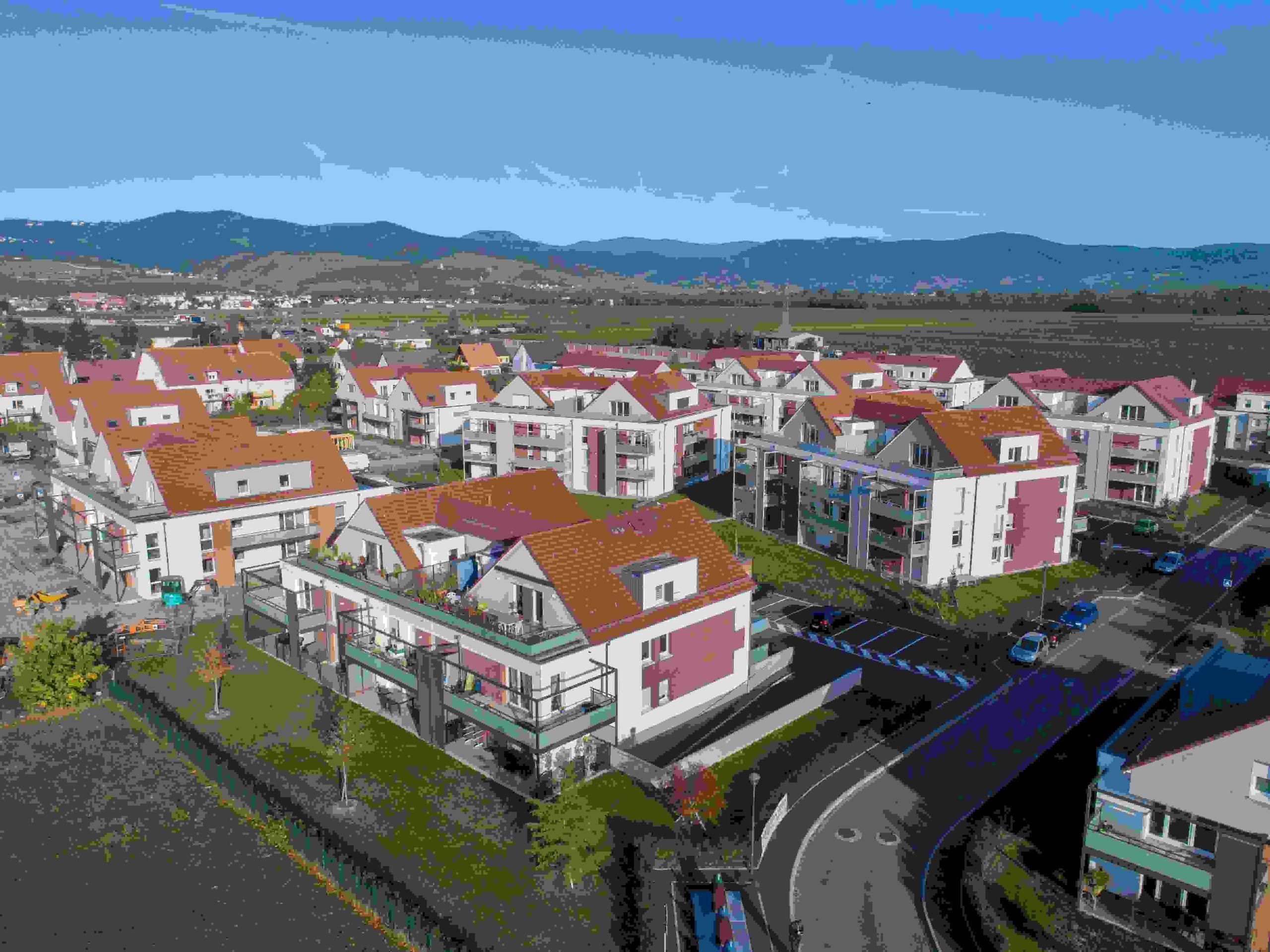 Dans petite copropriété entourée d'espaces verts, F3 neuf BBC au 1er étage comprenant :