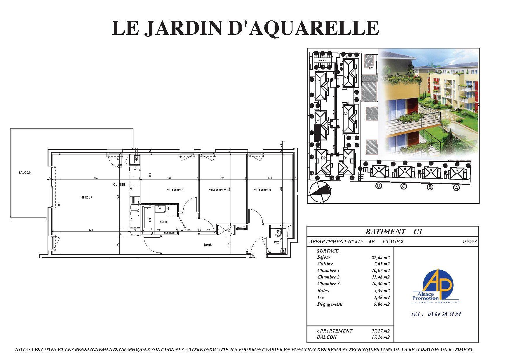 trois chambres, une cuisine équipée, un séjour ouvert sur grand balcon, salle de bains et WC séparés.